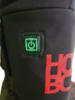 Dlouhým stiskem tlačítka na boční straně vaku zapněte (cca 3s). Tlačítko zčervená, což signalizuje okamžitý výhřev na nejvyšší teplotu. Dalším krátkým stisknutím tlačítka je možné postupně měnit úroveň vyhřívání od nejvyšší červené, přes střední modrou až po nejnižší zelenou.