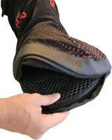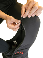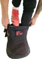 Vak položte na zem, odkryjte návlek a vložte obě nohy do vaku. Hotboots je možné používat v jakékoliv obuvi, případně bez obutí. Poté vytáhněte levou část návleku nad kolena a v oblasti stehna zapojte zip. Celý návlek zipem uzavřete plynulým přejetím na pravou stranu. Vak je kompletně nasazen, pokud jsou obě části návleku vypnuty až k oblasti stehen.